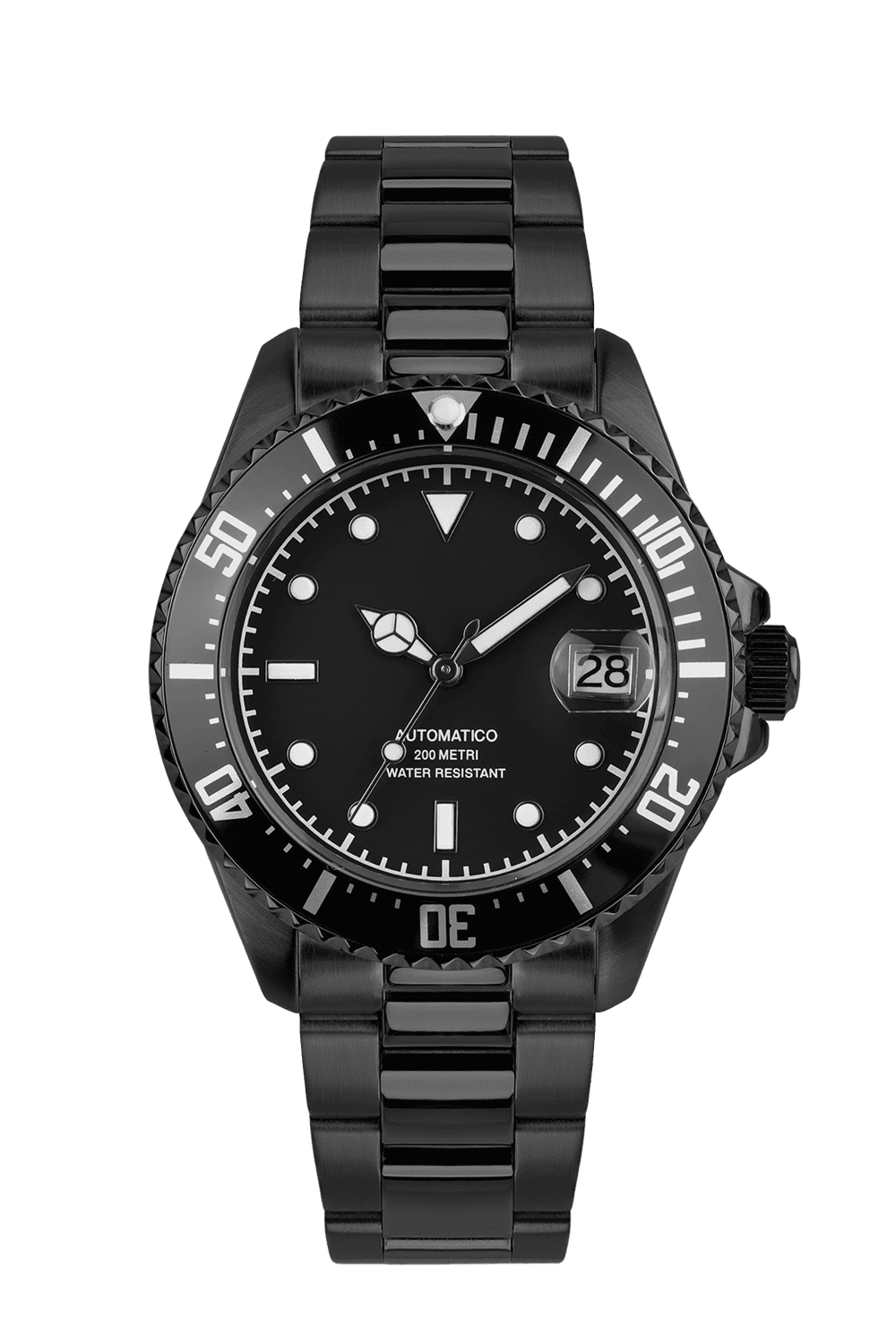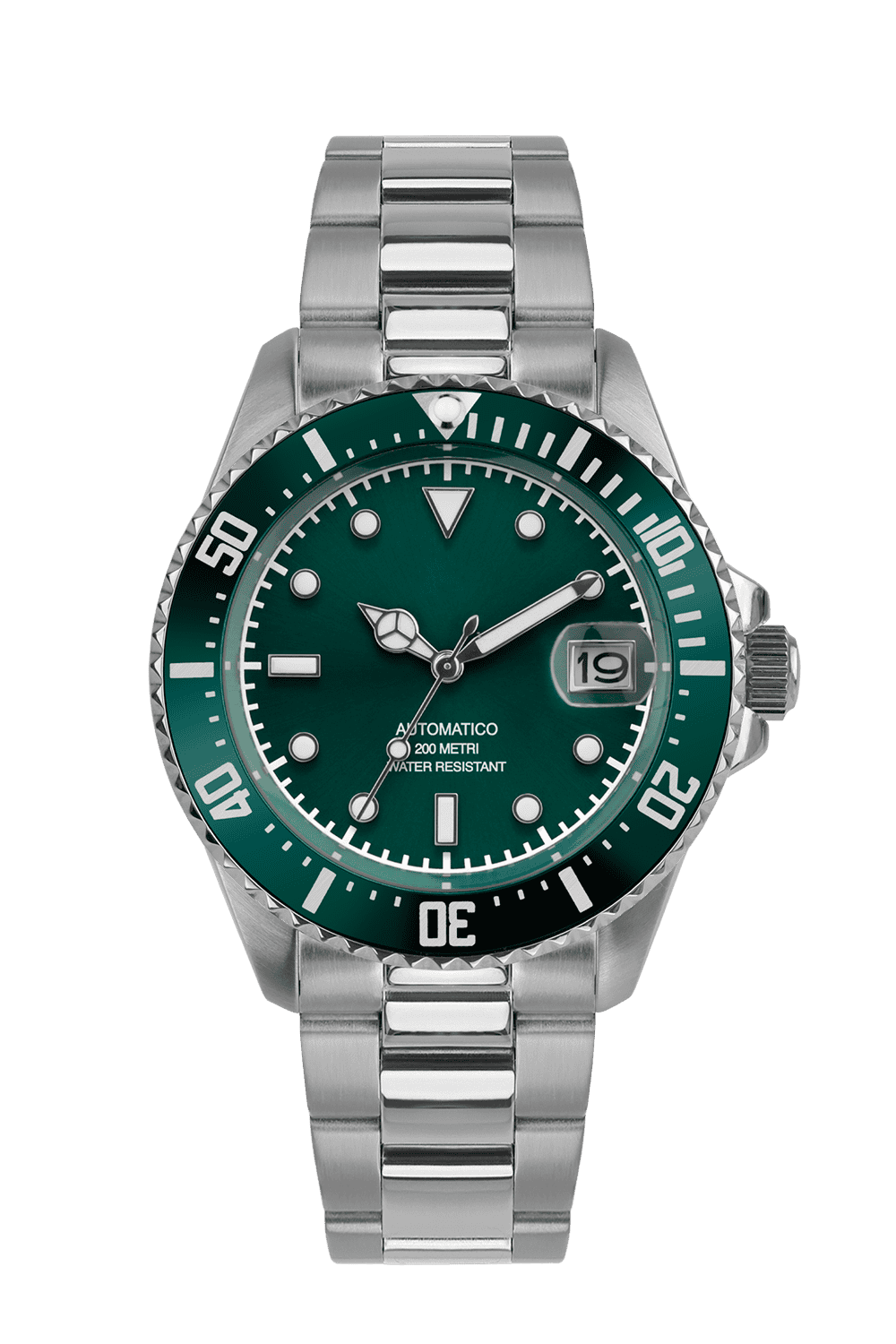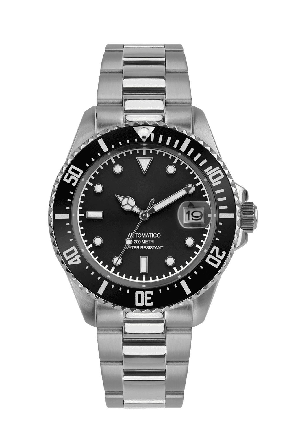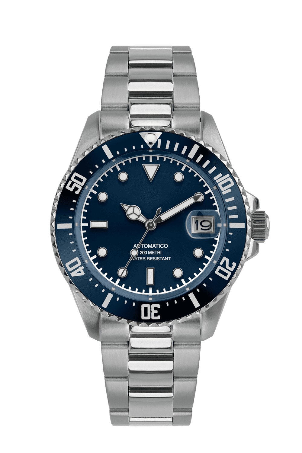 Descrizione: quadrante lucido o sunray con indici applicati con inserti luminosi e lancette con inserti luminosi